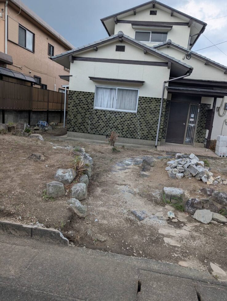 ■ 庭木・塀・置き石を撤去し、スッキリした外構に